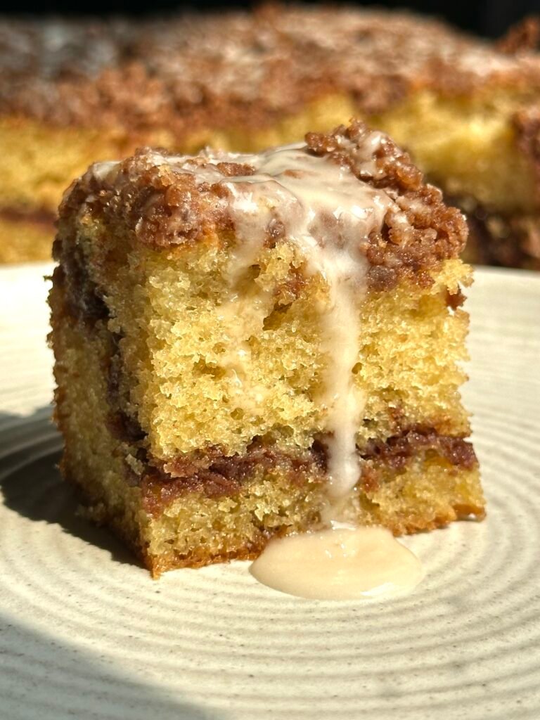 עוגת פירורים קינמון רכה ואוורירית עם שכבת קראמבל מתוק ומפנק מעל – בדיוק מה שצריך ליד הקפה או כקינוח לשבת. בסיס עוגה עשיר עם שמנת חמוצה ווניל, מעליו פירורי קינמון חמימים שנמסים בפה ויוצרים שילוב מושלם של טעמים ומרקמים. קלה להכנה, מרשימה בהגשה, ופשוט תענוג לאכול אותה בכל הזדמנות.