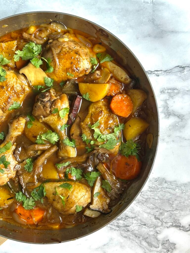 תבשיל עוף עם פטריות, תפוחי אדמה ובטטה – מנה ביתית מנחמת שממלאת את כל הבית בריחות משגעים. העוף מתבשל לאט עם ירקות ותבלינים, הרוטב מצטמצם והופך עשיר וסמיך, וכל ביס פשוט חגיגה של טעמים. מושלם לארוחת צהריים או ערב משפחתית